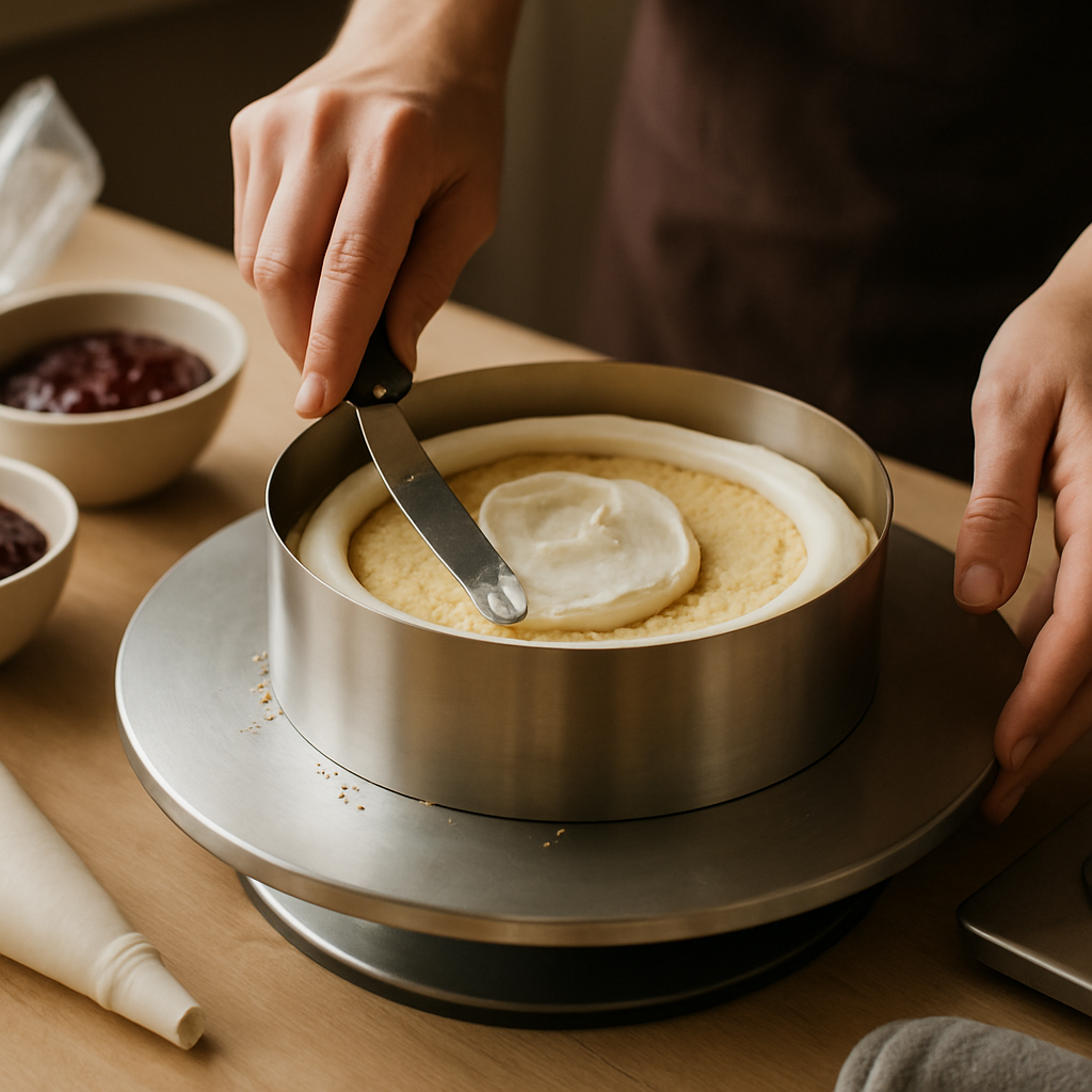Erfahre Schritt für Schritt, wie du Füllungen gleichmäßig verteilst und Kuchen perfekt schichtest. Praxistipps, Damm-Technik, Tools und Fehlervermeidung – jetzt lesen!